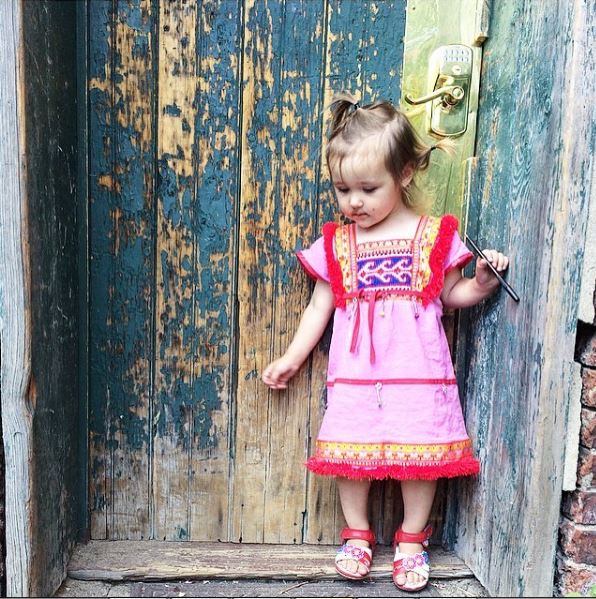 My Grand Daughter is in this photo taken right after chocolate ice cream. She loves this dress and wants to wear it everyday. Mom says on some days we must wash it. They wait until Saturday and my grand daughter stays in her PJs until the dress is dry.