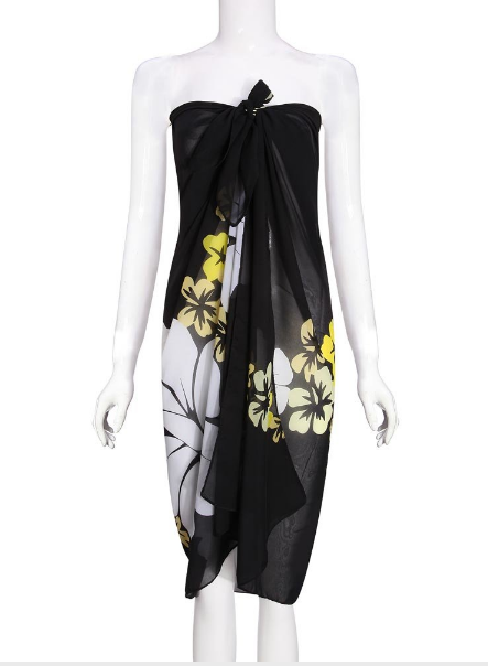 Black Pearl Wrapped Printing Chiffon Slip Beach Towels Belt Dress