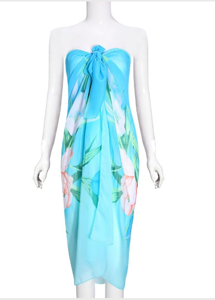 Printed Flowers Chiffon Red Blue Color Dress Beach Towels