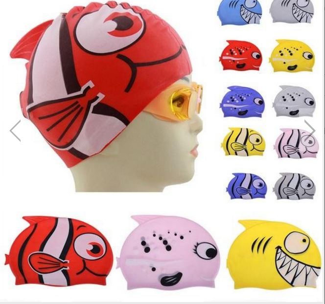 Children Waterproof Soft Silicone Swimming Cap Cartoon Fish Pattern Diving Cap