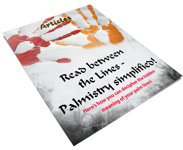 You must have often heard that no two fingerprints on this planet are identical. As a matter of fact, every hand is distinctive and unique so far as the pattern of lines is concerned. Your hand is different from that of others because you have your own hopes, personal memories and characteristic traits. What's interesting is the fact that there is a traceable connection between your thoughts, personality and experiences and what your handprints have to say. For all those who are curious to know the meaning and usage of palmistry, here is some ready help! We have compiled accurate information on palmistry in an e-book titled 'Read between the lines - Palmistry simplified!'. If you are curious to learn palmistry and have this e-book with you, you need not look any further!