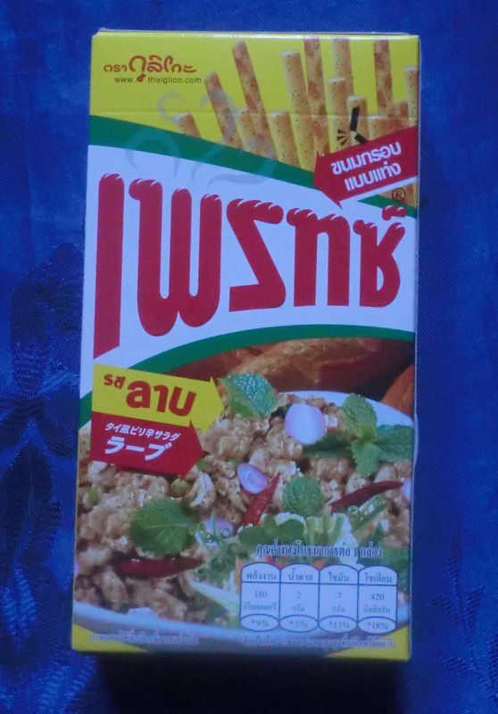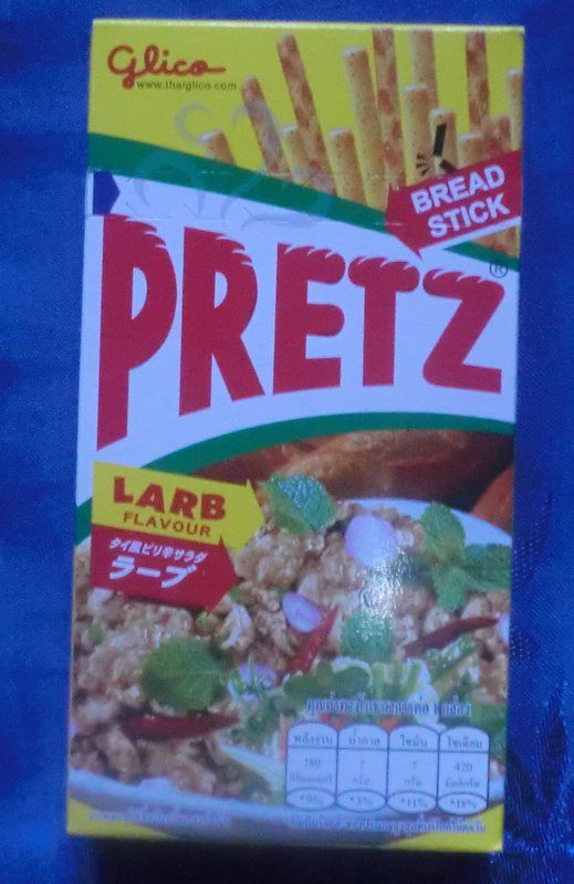 Larb is a savory dish offered in Northern Thailand and is usually sour, salty and spicy Brand: Glico Size: 39g Shipping Weight: 0.066kg Cuisine: Chinese, Japanese, Thai Produce Of: Thailand Ingredients: Wheat Flour, Coconut Oil, Larb Flavour (6%), Margarine, Sugar, Salt. If you want to have some fun look up the Larb Pretz on you tube for some of the ads about this savory treat. The prices range widely on the net from a high of 14.50 on Amazon Give this a try, you will not be disappointed.