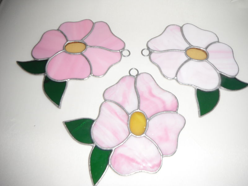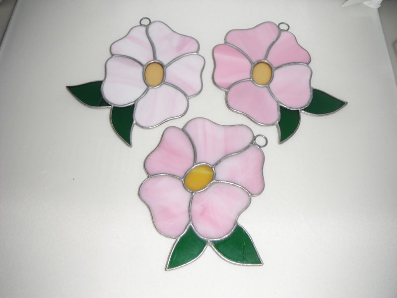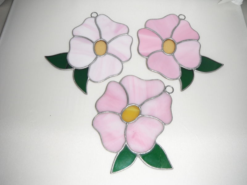 This beautiful handmade stained glass flower is for hanging window screen or door screen. It looks great for sun catching. It is perfect for decorating on your window screen or door screen. It can make a great gift... Zine Plated Size approximately: L: 4.85 inches (12.5 cm) W: 3.85 inches (10 cm) There are ONLY 3 available In Stock Color: Dark Pink, Light Pink, Medium Pink Color). Each costs $25