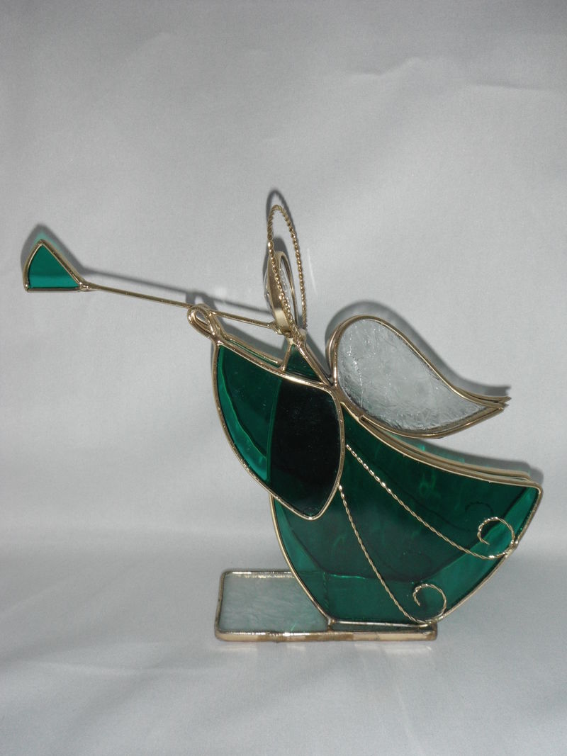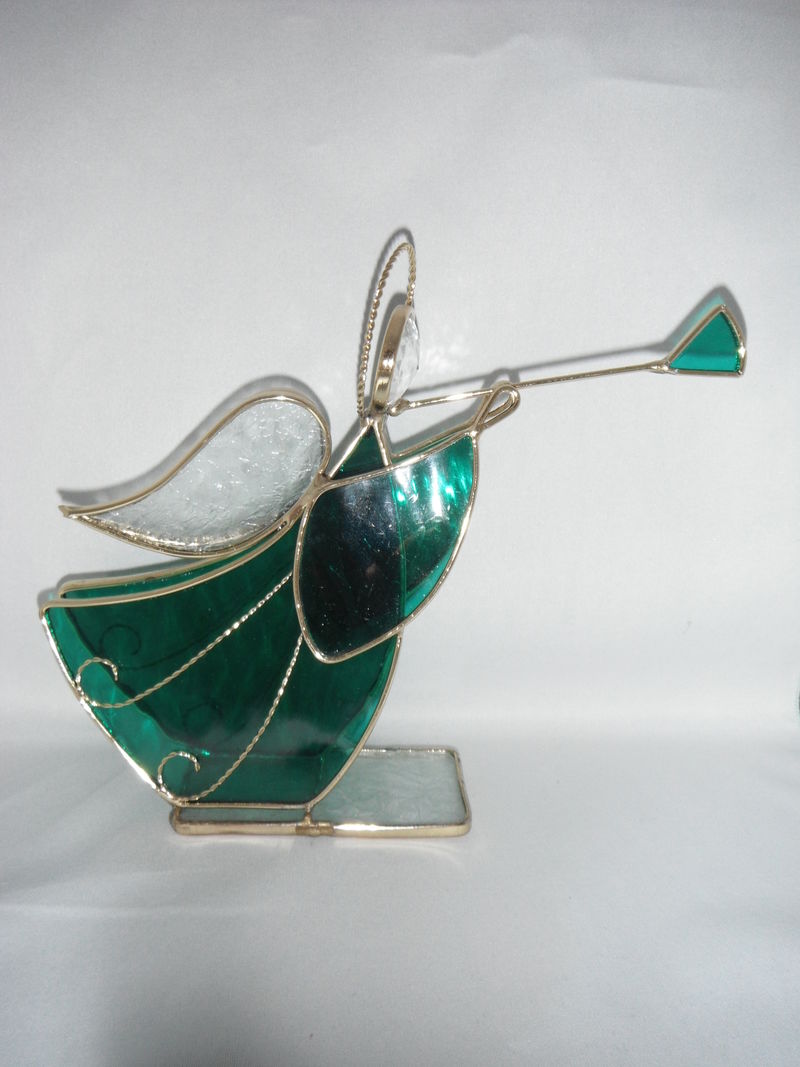 This beautiful handmade Stained Glass Angels is excellent for Christmas Gifts or for yourself. Display and decorate in your home... Zinc Plated. Size approximately: -H: 7.8 inches (20.5 cm) -W: 8.5 1/4 inches (22 cm) Base: -L: 4 1/4 inches (10.5 cm) -W: 1.75 1/4 inches (5 cm) There ar ONLY 1 left. $ 75 each