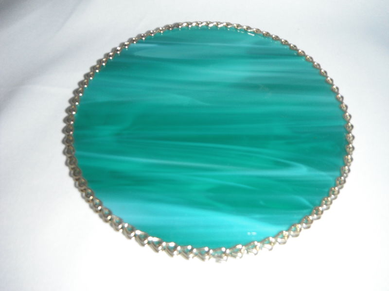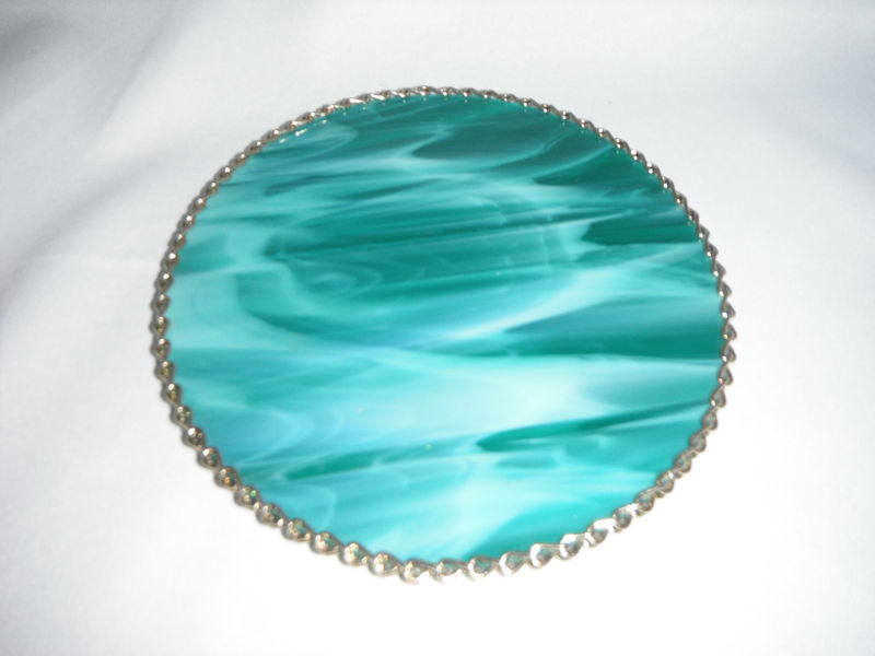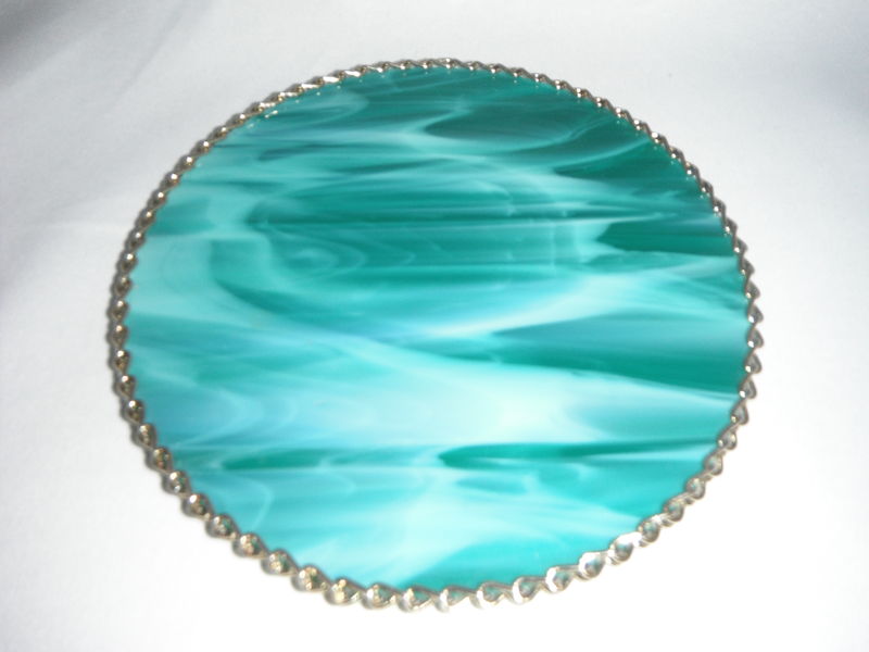 This beautiful handmade stained glass sun catcher is for hanging window screen or door screen. It looks great for sun catching. It is perfect for decorating on your window screen or door screen. It can make a great gift ... Zinc chain wrapped around Diameter : 6 1/4 inches (16 cm) There are ONLY 1 left $25
