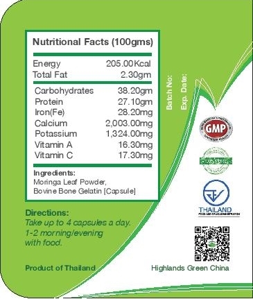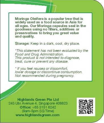Highlands Green Moringa Oleifera Powder Capsules