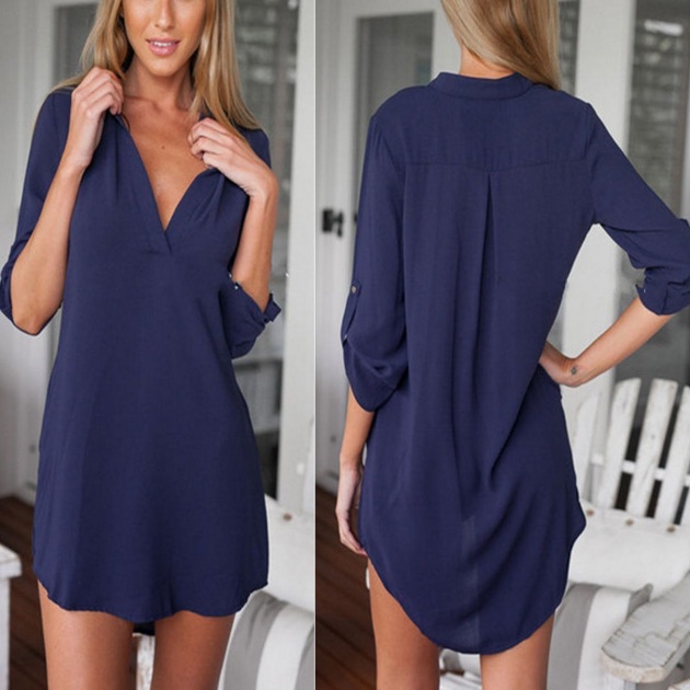 100% Brand New! Gender: Women Decoration: Button Clothing Length: Long Pattern Type: Solid Sleeve Style: Regular Style: Casual Fabric Type: Chiffon Material: Cotton, Polyester Collar: Turn-down Collar Sleeve Length: Full Sizes: S-3XL Colors: Black, White, Blue