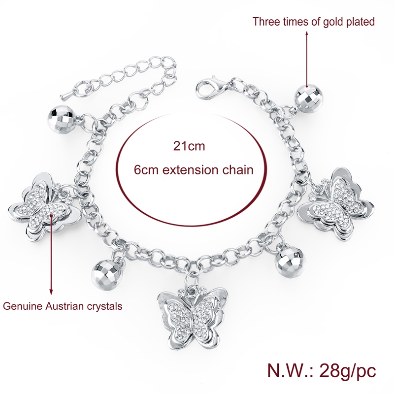 Item specifics Item Type:Bracelets Fine or Fashion:Fashion Style:Classic Gender:Women Brand Name:CHOKER Setting Type:Tension SettingMaterial:Crystal Chain Type:Link Chain Length:21cm Clasp Type:Lobste rMetals Type: 18K Gold Plated Shape\pattern:Butterfly Bracelets Type:Chain & Link Color: Golden or Silvery Product Description: Style: Fashion Jewelry Material: Austrain Crystal,Eco-friend Zinc Alloy Size: Length Of bracelets:20cm Weight:31g Wearing Occasion: Prom / Anniversary / Party/Engagement Fit for: Bracelets For Women This jewelry accord with the eu environmental requirements Package: 1x Bracelet (Color of your choice)