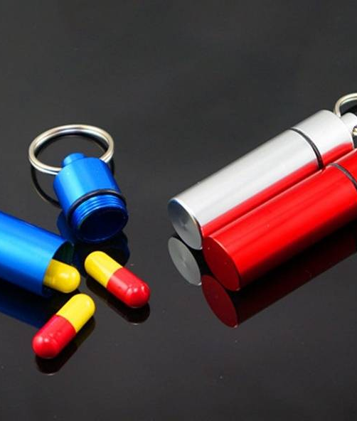 1 PCS Waterproof Aluminum Pill Box Case Drug Medicine Keychain Holder Container For Travel