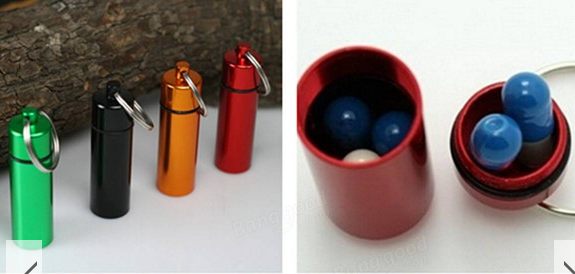 Specification: Category: Pill case Material: Aluminum Size: 54mm(H) x 17mm(Dia) Color: Sent at random Description: Aluminum material, waterproof, wear-resisting and air tight. Small and with keyring, and attach to your bag or belt, lightweight and portable. Perfect to store emergency medicineand small pills, especially when you travel, you can keep some medicine in it. It can be clipped easily to key chains, handbags, golf bags, belt loops or used as a zipper pull for your coat or jacket. This waterproof holder also makes a great place for your kids to carry his/her ID and medication information. Package Includes: 1 x Pill Box (Random delivery)