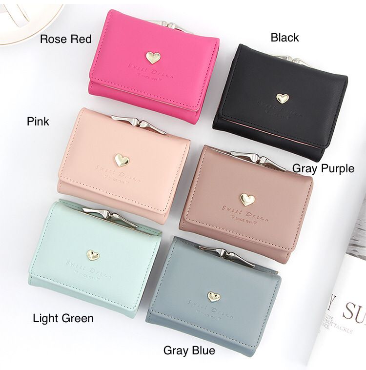 Item specifics Main Material: PU Wallet Length: SHORT Item Weight: 130g Lining Material: PolyesterI tem Height: 10.8cm Material Composition: pu leather Pattern Type: Solid Style: Casual Interior: Interior Zipper Pocket Interior: Interior Compartment Interior: Zipper Pouch Interior: Coin Pocket Interior: Note Compartment Interior: Photo Holder Item Width: 3cm Gender: WOMEN Item Length: 9cm Closure Type: No zipper Wallets: Standard WalletsDecoration: heart Package: 1X Lady Wallet (Color Of Your Choice)