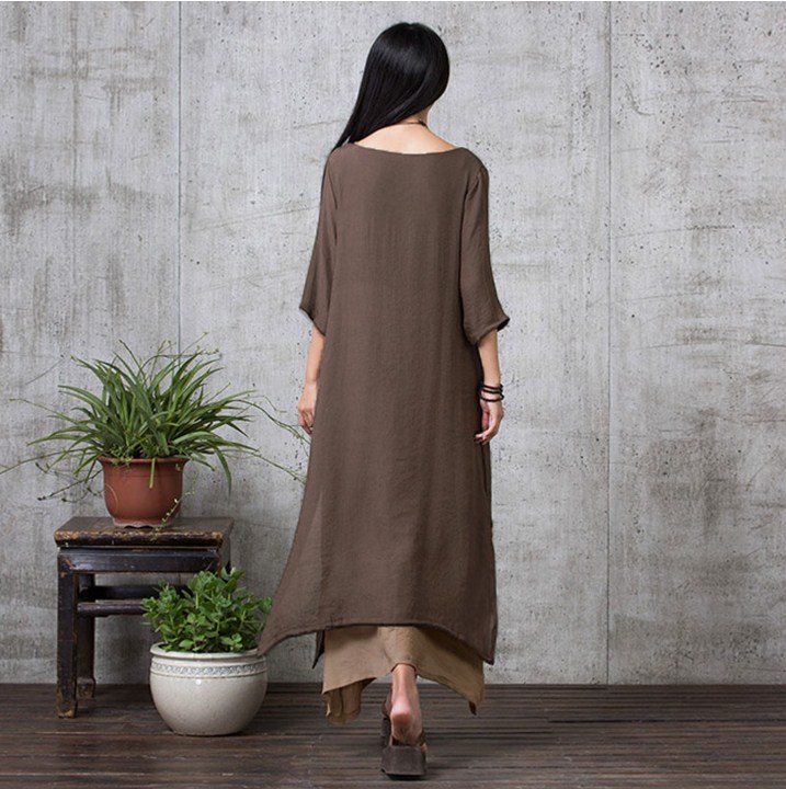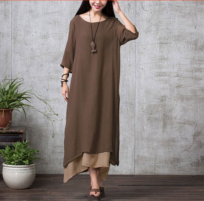 100% Brand New! Gender: Women Waistline: Empire Dresses Length: Ankle-Length Season: Spring, Summer Silhouette: Loose Neckline: O-Neck Sleeve Length: Half Decoration: None Pattern Type: Solid Sleeve Style: Regular Style: Vintage Material: Cotton, Linen Fabric Type: Broadcloth Colors: Coffee Sizes: S-5XL Package Content: 1 x Summer Dress Package Weight: 0.3kg (0.66lb.) Package Size: 35cm x 30cm x 7cm (13.78in x 11.81in x 2.76in)