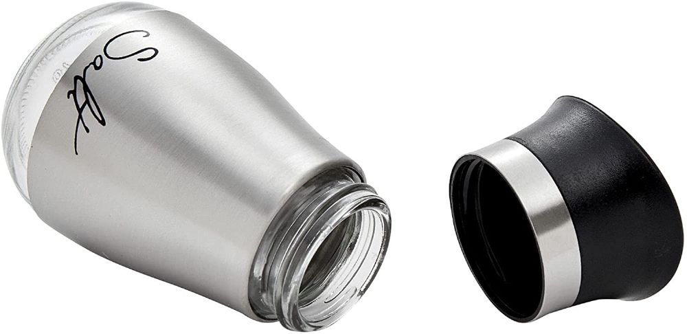 Made from high quality stainless steel with a glass bottom that helps to verify when shakers are getting low, avoiding the hassle of constantly removing the cap.