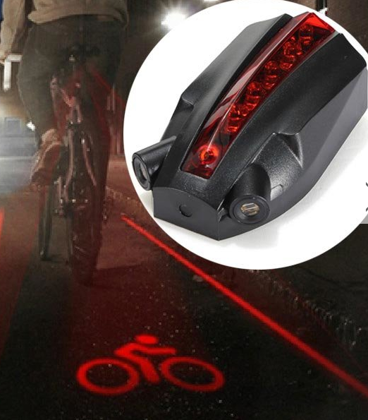 5 LED 2 Laser Beams Intelligent Bike Logo Safety Rear Tail Light