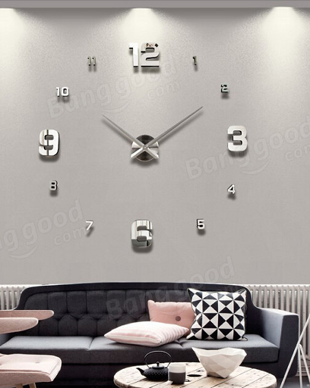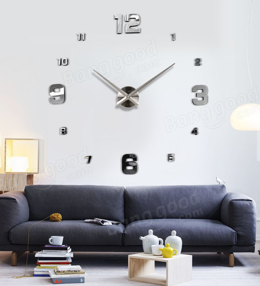 Large DIY 3D Wall Clock Home Decor Mirror Sticker Art