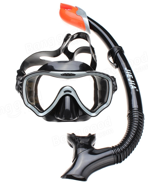 Jiejia Black Blue Professional Goggles Breathing Tube Set Snorkeling Goggles Set