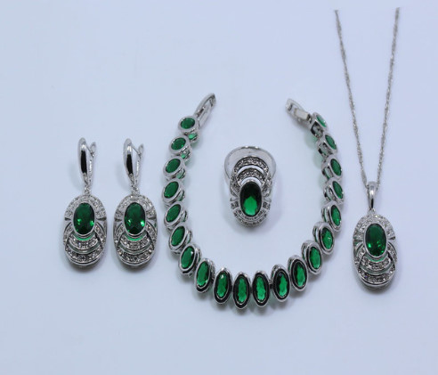 Item Type: Jewelry Sets Fine or Fashion: Fashion Included Additional Item Description: Earring Ring Necklace Pendant Bracelet Style: Classic Gender: Women Material: Semi-precious Stone Occasion: Wedding Metals Type: Silver Shape\pattern: Round Jewelry Sets Type: Bridal Jewelry Sets Main Stone: Emerald Main Color: Gren About Shipping: Free Shipping Free Gift: Jewelry Box is-Customized: Yes metal Stamp: 925 Stamp Occasion: Party Gift Wedding Technics: Handmade