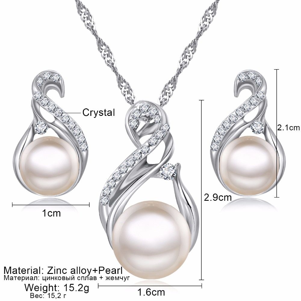 Elegant Pearl Crystal Rhinestone Necklace Earrings Jewelry Set For Women Description: Material: Alloy Main Stone: Crystal, Rhinestone, Imitation Pearl Color: Silver Gender: Women Necklace Chain Length: As picture Necklace Extension Chain Length: As picture Necklace Pendant Size: As picture Earring Size: As picture Package Includes: 1 X Hollow Pipa Pearl Crystal Jewelry Set (Please choose the one you like.) Notice: 1.Due to the difference between different monitors, the picture may not reflect the actual color of the item. Please consider this before the purchase. 2.Please allow slight deviation for the measurement data.