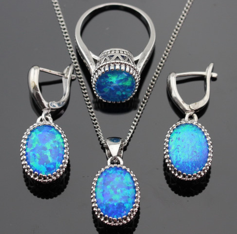 Item Type: Jewelry Sets Fine or Fashion: Fashion Included Additional Item Description: Pendant/Necklace Chain/Ring/Earrings Style: Classic Gender: Women Material: Semi-precious Stone Occasion: Wedding Metals Type: Silver Shape\pattern: Round Jewelry Sets Type: Bridal Jewelry Sets Main stone: Opal Main stone color: Blue Quality : AAA Gift: Free Jewelry Box is_customized: Yes
