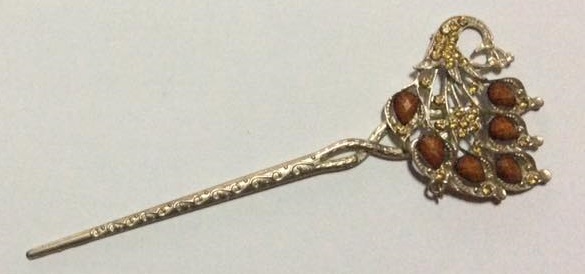 Beautiful Handmade hair sticks. Each one is absolutely unique. No two are the same. So each will have its own listing. Like the design and do not see the colors you like - email me and I will get one custom made for you. They are sturdy and beautiful peacock with hanging pendants.