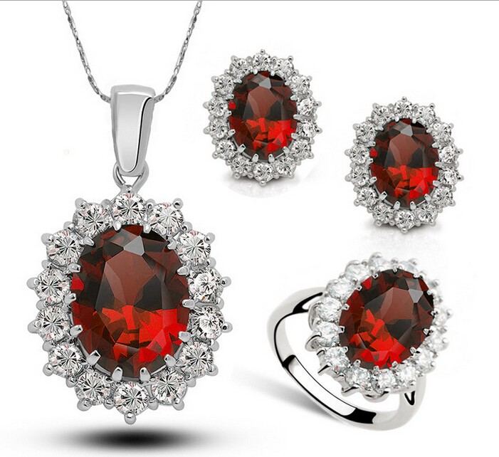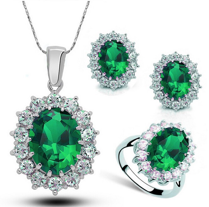 Item specifics Item Type:Jewelry Sets Fine or Fashion:Fashion Included Additional Item Description:Neckalace+ pair Earring+ring Style:RomanticGender:Women,Girls,lovers' Material:Cubic Zirconia Occasion:Wedding Metals Type:Copper Shape\pattern:Round Jewelry Sets Type:Bridal Jewelry Sets Model Number:IKZ1194 Material: Color Retention Plated, Zircon Topaz Zircon Crystal Design: Clover Pendant Size: 2.2mm(L)*1.7cm(W) Chain Length: 40+5cm Necklace Weight: 7.6g Earring Size: 1.6mm(L)*1.4cm(W) Earring Weight: 5.2g Ring Size: 16mm, 17mm,18mm Package: 1X Jewelry set your choice of color and ring size
