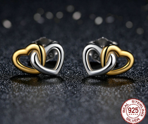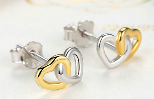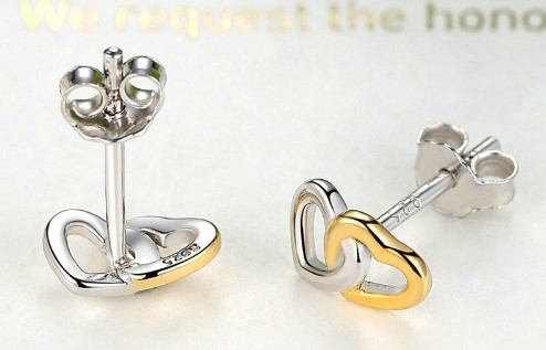 Metals Type:Sterling Silver Shape\pattern: Heart Material: Cubic Zirconia Gender: Women Style: Romantic Earring Type: Stud Earrings Item Type: Earrings Fine or Fashion: Fashion Color: Silver + Gold