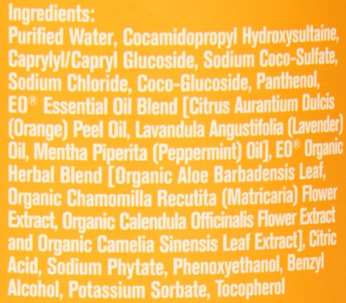 3 in 1: Face, Hands, Body lotion is light enough for your face and hydrating and moisturizing enough for hands and body. Pure and natural, it soothes and softens skin for the whole family. Pure organic essential oils and organic coconut and sesame seed oil nourish and moisturize all skin types. This lotion is cruelty free, paraben free, polysorbate free, disodium EDTA free, gluten free and non-GMO verified. INGREDIENTS Purified Water, Vegetable Glycerin, Organic Cocos Nucifera (Coconut) Oil, Glyceryl Stearate, Caprylic/Capric Triglyceride, Cetearyl Olivate, Sorbitan Olivate, Stearyl Alcohol, Organic Sesamum Indicum (Sesame) Seed Oil, Tocopherol, Phospholipids, Cetyl Alcohol, Cetyl Esters, Hydrolyzed Rice Protein, EO® Organic Herbal Blend [Organic Aloe Barbadensis Leaf, Organic Chamomilla Recutita (Matricaria) Flower Extract, Organic Calendula Officinalis Flower Extract, and Organic Camelia Sinensis Leaf Extract], EO® Essential Oil Blend [Citrus Aurantium Dulcis (Orange) Peel Oil, Lavandula Angustifolia (Lavender) Oil , Mentha Piperita (Peppermint) Oil], Xanthan Gum, Sodium Phytate, Dimethicone, Citric Acid, Phenoxyethanol, Benzyl Alcohol, Potassium Sorbate