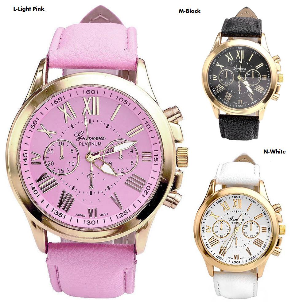 A classic look, this fashion geneva roman numerals analog quartz wrist watch is specially designed with metal case and faux leather band
