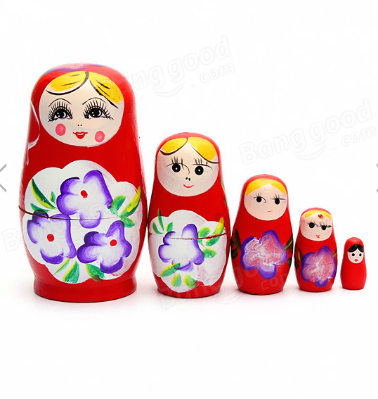 It consists of 5 dolls, all smaller dolls are entering into bigger ones.