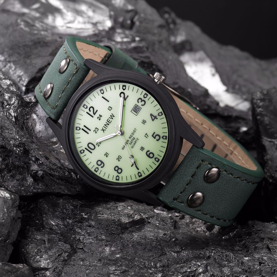 Feature: 100% New and high quality Gender :Men Fashion Lovely And High Quality Trendy Watch! Movement:Quartz Watchcase Diameter:4.2cm approx. Watchcase Thickness:1.2cm approx Band Length:26.5cm approx. Band Width:2.2cm approx. Band material: Leather Case material: Stainless Steel NOTE:Daily Water Resistant. You can wear it wash your hand. But not for swimming! Package contains : 1 x watch