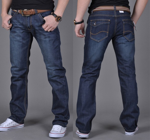 Mens Slim Fit Dark Blue Jeans Straight Leg Trousers Spring Autumn Denim Pants