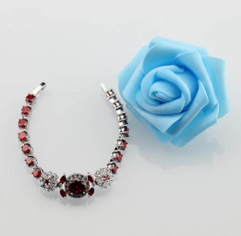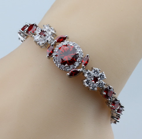 Fine or Fashion: Fashion Item Type: Bracelets Style: Romantic Gender: Women Setting Type: Prong Setting Material: Semi-precious Stone Chain Type: Link Chain Length: 7 Inch Clasp Type: Hidden-safety-clasp Metals Type: Silver Shape\pattern: Plant Bracelets Type: Chain & Link Bracelets Main Stone: Garnet Topaz Main Color: Red White Quality: AAA+ Quality Is-Customized: Yes Technics: Handmade About shipping: Free Shipping Shipping Time : 2 Work Day About Gift: Beautiful Jewelry Box Metal Stamp: 925 Stamped
