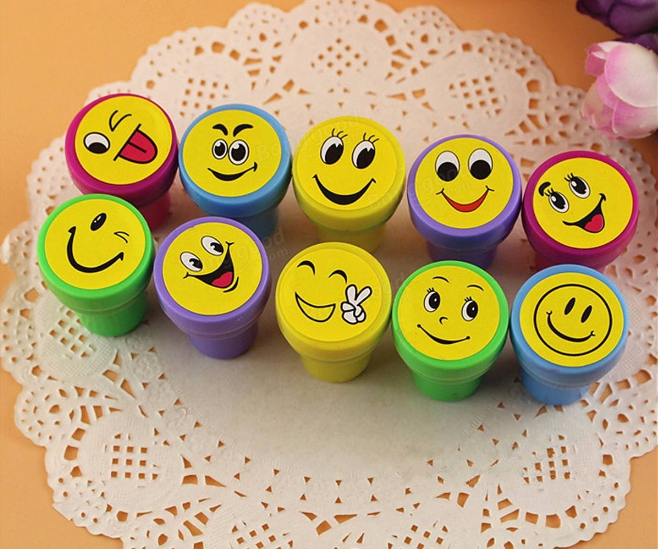 10Pcs Emoji Smile Silly Face Stamps Set Stationery For Kids Gift Party