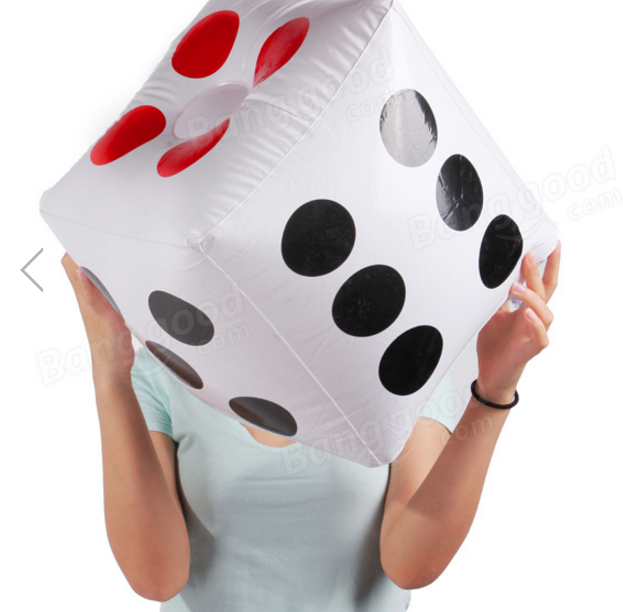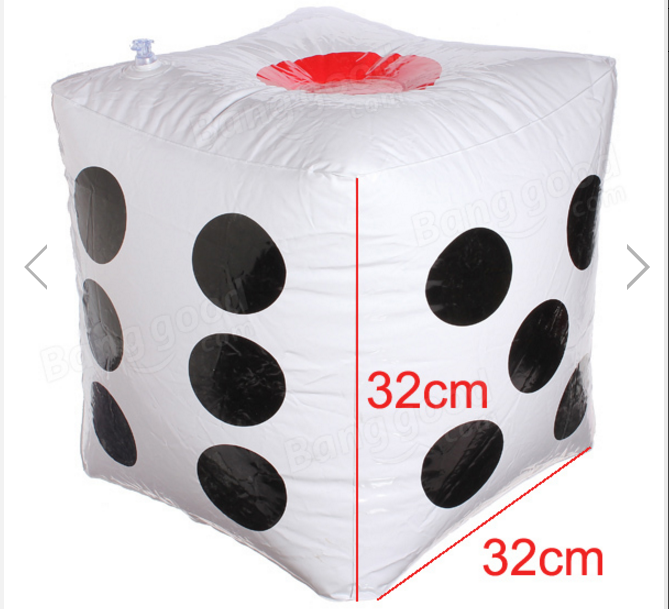 Features: The inflatable dice is great for pool and party Big inflatable dice Great party favours, outdoor toys, pool toys, etc. Can be also used to decorate kids' room Easy to blow up Ideal for kids to play Material: PVC Dimensions: Approx. 32 x 32 x 32cm (inflated) / 12.59" x 12.59" x 12.59" Color: White with Black and Red dots Note: Keep away from fire and sharp objects For children over 3 years old only Package Included: 1 x Inflatable Dice Ships in 7 business days. It is shipped from China. Delivery is provided by China Post Air Mail. Delivery time depends on the couriers, local customs in your country also holidays, weather conditions. Usually it takes from 39 to 60 days, depending on the customs at your country.