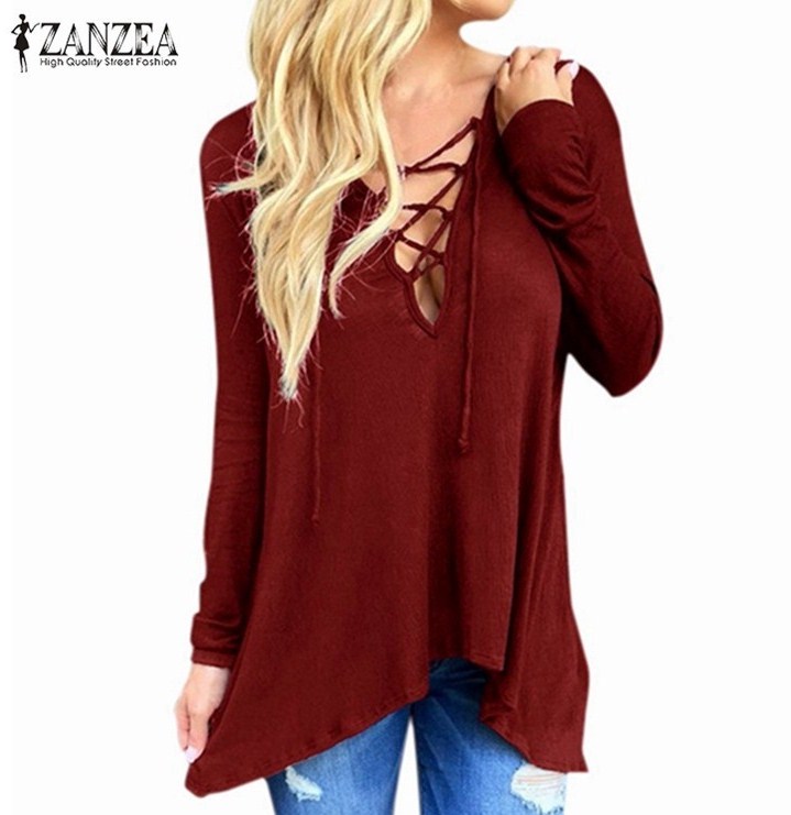 100% Brand New! Brand Name: ZANZEA Gender: Women Decoration: Hollow Out Clothing Length: Regular Sleeve Style: Regular Pattern Type: Patchwork Style: Casual Fabric Type: Broadcloth Material: Cotton, Polyester, Spandex Collar: V-Neck Sleeve Length: Full Sizes: S-5XL Colors: Black, Gray, Blue, Wine Red