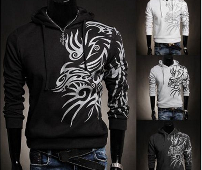 Mens Hooded Tattoo Coats Slim Casual Stylish Printed Fleece Sweatshirt