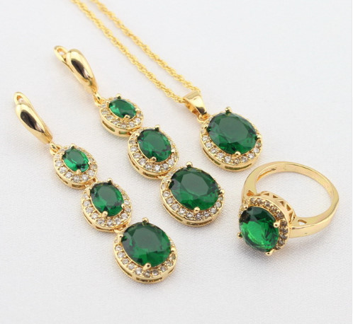 Item Type: Jewelry Sets Fine or Fashion: Fashion Included Additional Item Description: Pendant/Necklace Chain/Ring/Earrings Style: Classic Jewelry Sets Type: Bridal Jewelry Sets Material: Semi-precious Stone Shape\pattern: Round Occasion: Wedding Gender: Women Metals Type: Gold Plated Main stone color: Green Quality : AAA Gift: Free Jewelry Box is_customized: Yes
