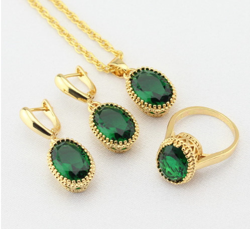 Item Type: Jewelry Sets Fine or Fashion: Fashion Included Additional Item Description: Pendant/Necklace Chain/Ring/Earrings Occasion: Party Style: Classic Jewelry Sets Type: Necklace/Earrings/Ring Material: Semi-precious Stone Shape\pattern: Round Gender: Women,Unisex Metals Type: Gold Plated Main stone color: Green Quality : AAA Gift: Free Gift Box is_customized: Yes