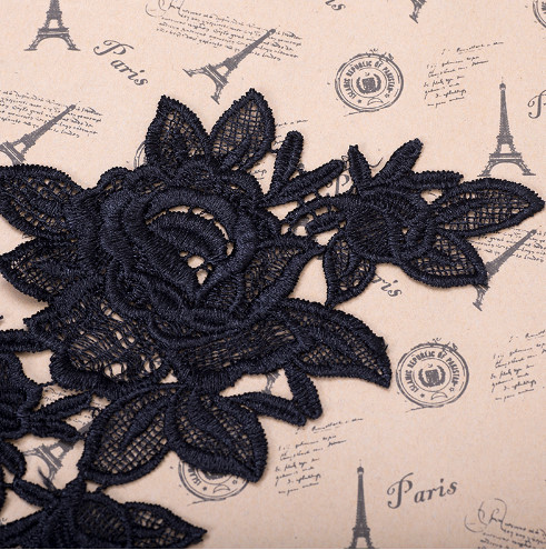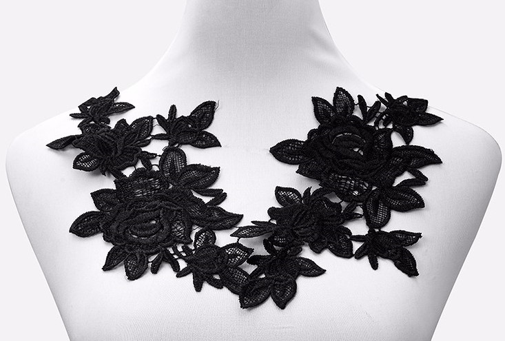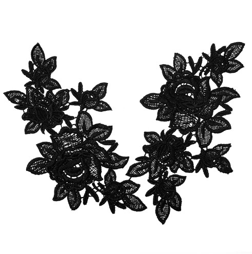 1pc Embroidery Venise Black Rose Flower Lace Neckline