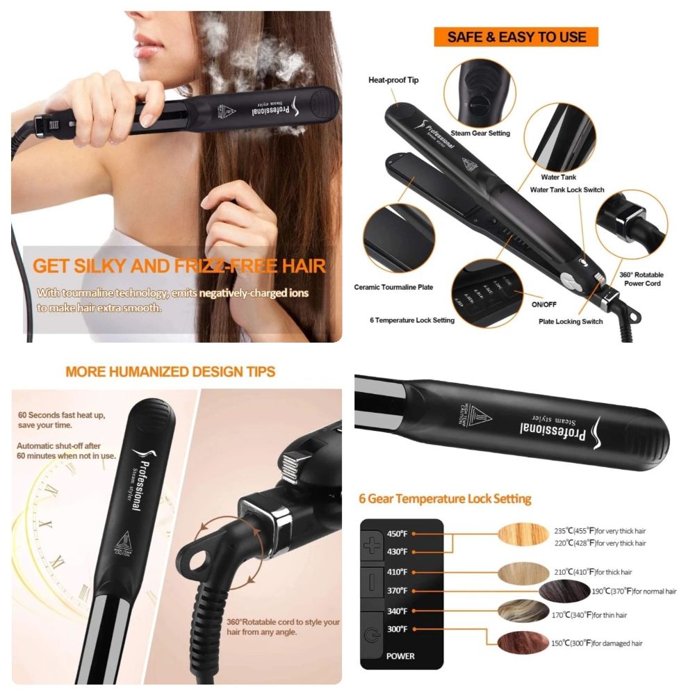 Professional Salon Steam Flat Iron - Healthy & Silky Hair Straightener