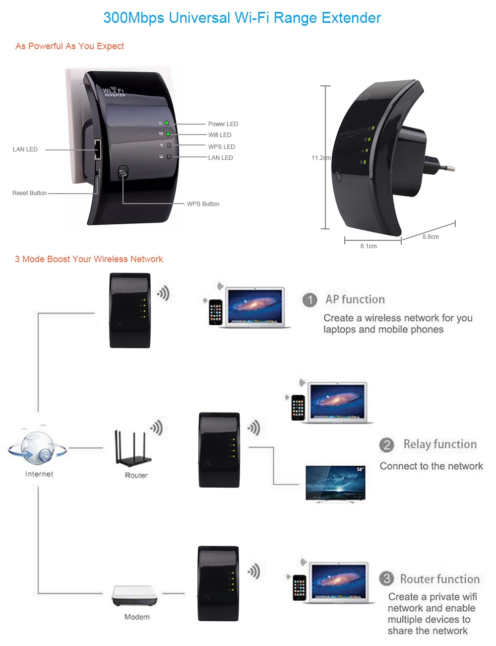 Product type: 300Mbps Wireless Wifi Repeater.