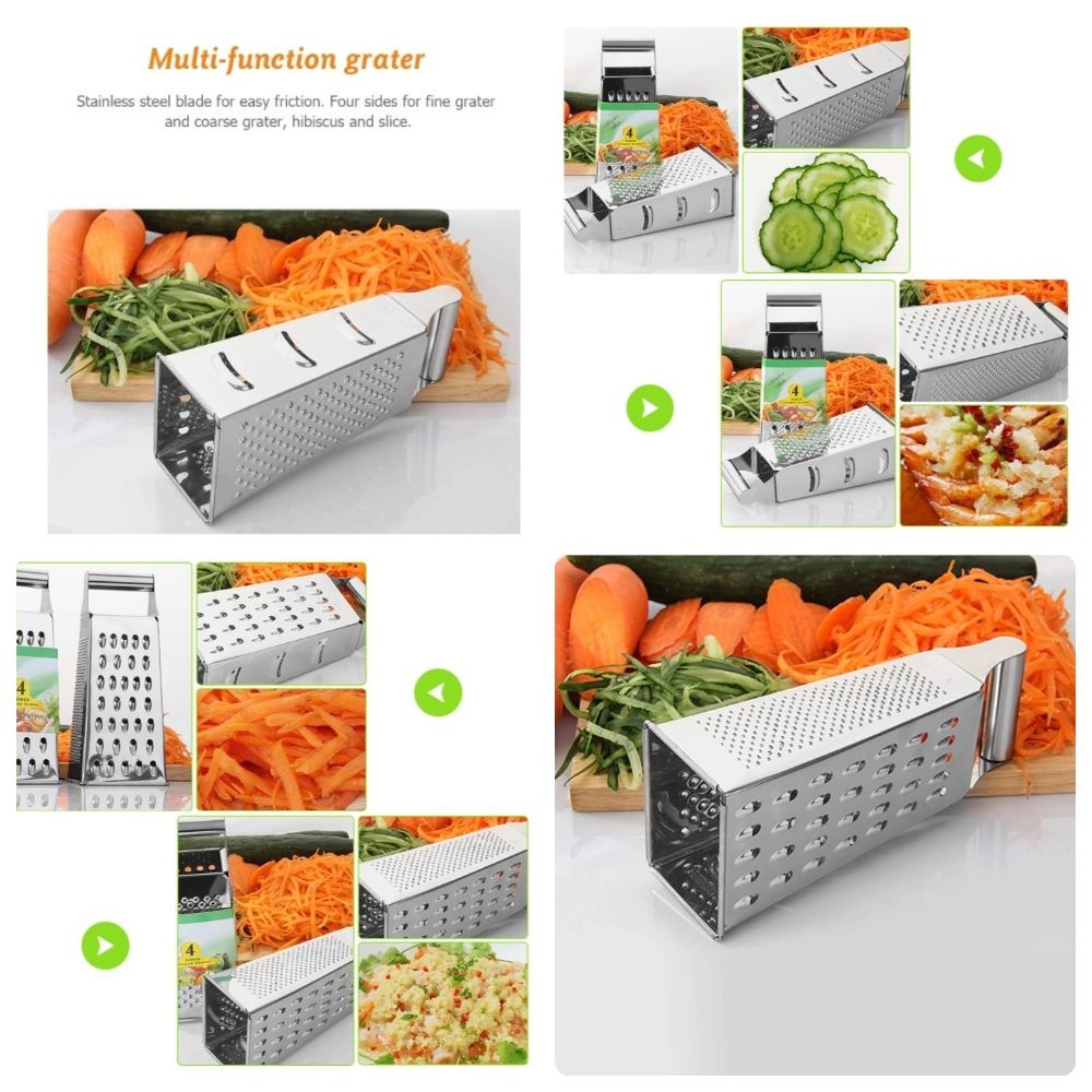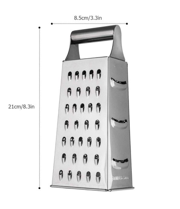 Features: 1. Durable stainless steel: The heavy-duty cheese grater is made of stainless steel with long-lasting strength. 2. 4-side blade: 4-side sharp stainless steel shredding holes can effectively grind various foods, including cheese, vegetables, chocolate, etc. 3. Ergonomic handle: comfortable stainless steel handle provides safe and reliable grip and ultimate control. 4. Easy to maintain: The heavy-duty cheese grater can be cleaned in the dishwasher and can be cleaned quickly. 5. Application: Grater is used for carrot, chocolate, lemon, coconut and hard cheese or other things. Description: The multifunctional shredding tool can be sliced ​​and shredded, used for multiple purposes, and is a practical kitchen tool. Specifications: Material: stainless steel Size: 8.2*5.8*24cm (L*W*H) Category: kitchen tools Style: 4-sided Package Included: 1 * Combination Grater Notes: 1. Please allow 0-1 inch error due to manual measurement. Thanks for your understanding. 2. Monitors are not calibrated same, item color displayed in photos may be showing slightly different from real object.