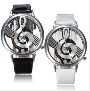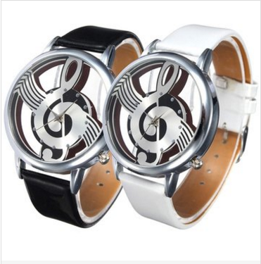 Fashion Hollow Music Melody Note PU Leather Band Analog Quartz Wrist Watch