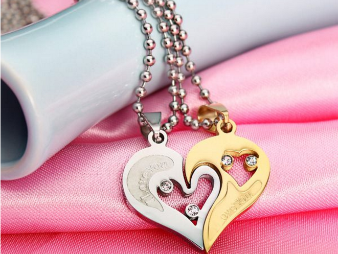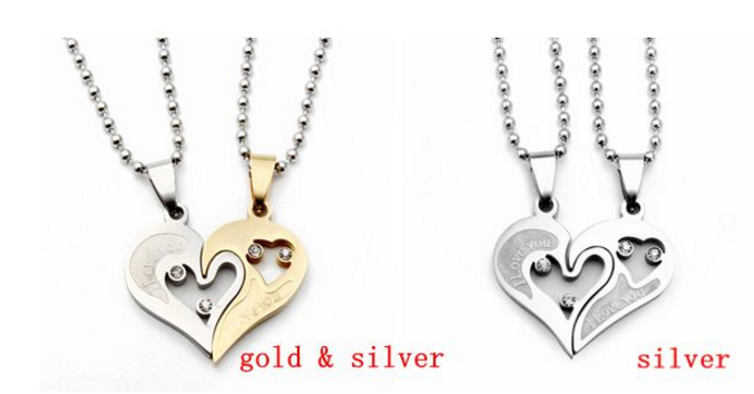 1 Pair 316L Stainless Steel I Love You Matching Hearts Lover Necklaces