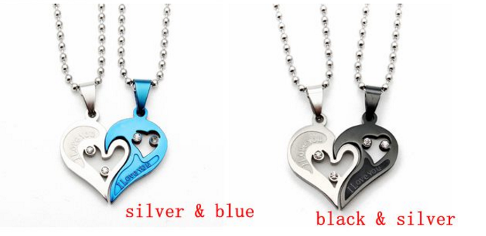 Item Specifics: Material: Stainless Steel & Crystal Color for Selection: Gold & Silver, Black & Silver, Silver & Blue, Silver Gender: Women, Men Style: Sweet Chain Length: About 61cm Left Side Heart Pendant Size: About 3.7 x 2cm(L x W) Right Side Heart Pendant Size: About 3.7 x 1.8cm(L x W) Total Weight: About 18g Package Includes: 1 Pair x Stainless Steel Heart Necklaces Ships in 7 business days. It is shipped from China. Delivery is provided by China Post Air Mail. Delivery time depends on the couriers, local customs in your country also holidays, weather conditions. Usually it takes from 39 to 60 days, depending on the customs at your country.