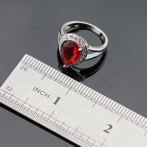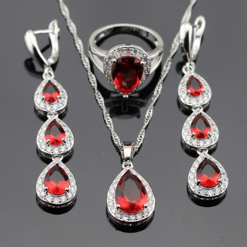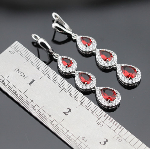 Item Type: Jewelry Sets Fine or Fashion: Fashion Included Additional Item Description: Pendant/Necklace Chain/Ring/Earrings Jewelry Sets Type: Bridal Jewelry Sets Material: Semi-precious Stone Style: Trendy Occasion: Wedding Shape\pattern: Water Drop Gender: Women Metals Type: Silver Main stone: Garnet Topaz Main stone color: Red White Quality : AAA