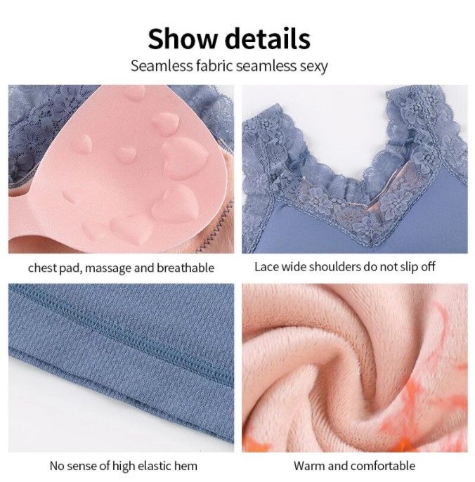 Thermal Underwear plus velvet thickening! Careful craftmanship, skin friendly fabric, comfortable and healthy, warm and thick. Light, elastic and breathable material, a high rebound does not loosen easily. High-density velvet as delicate fluff, comfortable and skin-friendly. Shaping the perfect curve, lace beautiful back. Seamless fabric, comes with chest pads, massage and breathable. Lace wide shoulders, do not slip off. No sense of high elastic hem, don't want to take it off! Warm and fuzzy body underwear, it feels soft and silky.