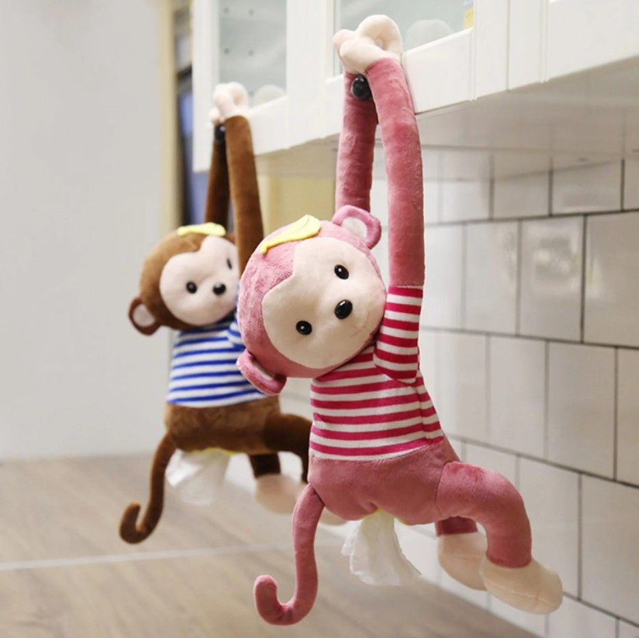 Monkey Tissue Box Cartoon Creative Monkey Tissue Box Holder Case Kawaii Home Office Car Hanging Paper Napkin Tissue Box Portable P