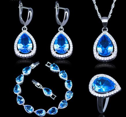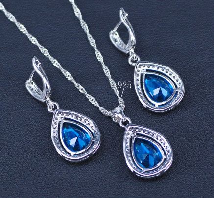 Item Type: Jewelry Sets Fine or Fashion: Fashion Occasion: Party Included Additional Item Description: Earrings/Necklace/Pendant Style: Classic Shape\pattern: Water Drop Gender: Women Jewelry Sets Type: Necklace/Earrings Metals Type: Silver Material: Cubic Zirconia Color: Blue Occasion: Anniversary is_costomized: Yes