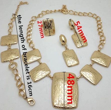 Item Type: Jewelry Sets Fine or Fashion: Fashion Included Additional Item Description: Necklace Earrings Bracelet Ring Style: Trendy Gender: Women Material: Crystal Occasion: Party Metals Type: Zinc Alloy Shape\pattern: Plant Jewelry Sets Type: Necklace/Earrings/Bracelet COLOR: gold plated Fashion : resort style/ Magazine recommended /street Packing: Well-packed in OPP bag, without card . Wear season: All the year round SIZE : There are pictures and text RING size: Opening size
